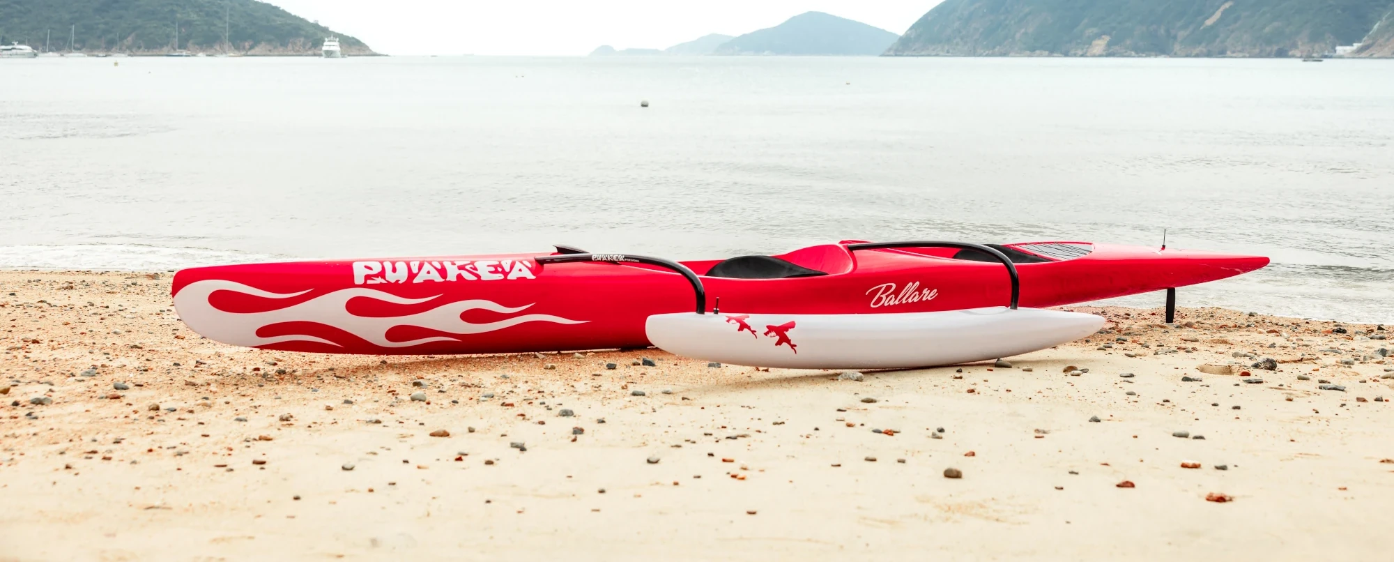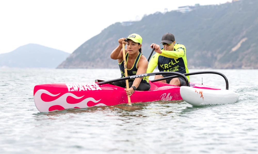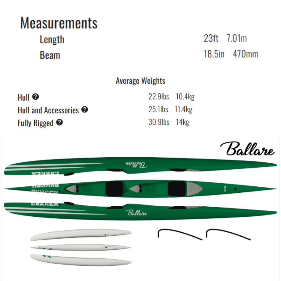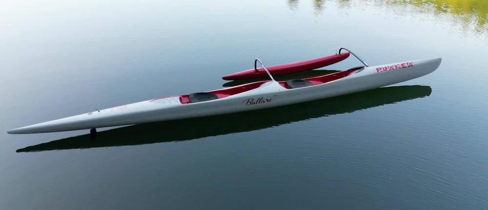 “The Ballare lets you enjoy the carry and maneuverability of Puakea OC1 designs with a partner. It allows either or both paddlers to steer, making it a great learning tool. Its low drag design lets you push the limits of flatwater speed and its shorter length gives unparalleled maneuverability in the surf. With a narrow hull, it has a good waterline with smaller paddlers but enough reserve buoyancy for two larger paddlers. And the ama is rethought, with less wetted surface that lets the Ballare turn on a dime and run down the wave with minimal interference. Overall, the Ballare brings something new to OC2s.”